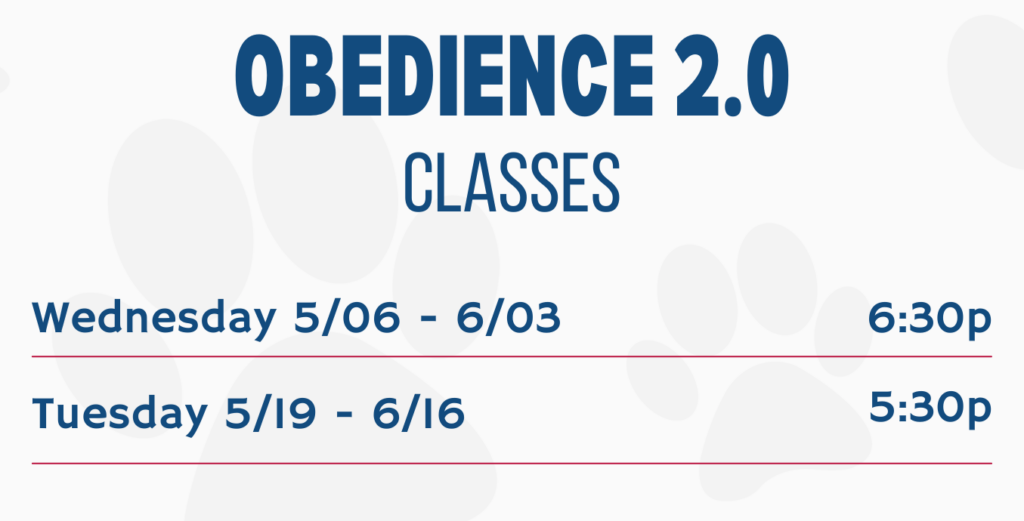Obedience 3.0 takes everything your dog has learned and puts it to the test for real-world environments. Over five weeks, we will be helping your dog master focus and obedience even with distractions like new people, smells, and sounds.